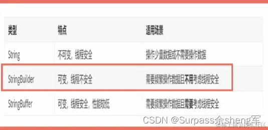 - StringBuilder的缺点: 由于它是一个可变对象,那它自然就线程不安全,为了解决这个线程安全问题,Java推出了StringBuffer。