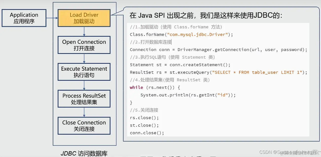 我们来看一下SPI出现之后,我们是如何使用JDBC的?
