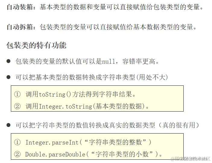 - 自动拆箱:把包装类自动地变成其对应的基本数据类型