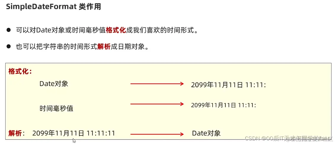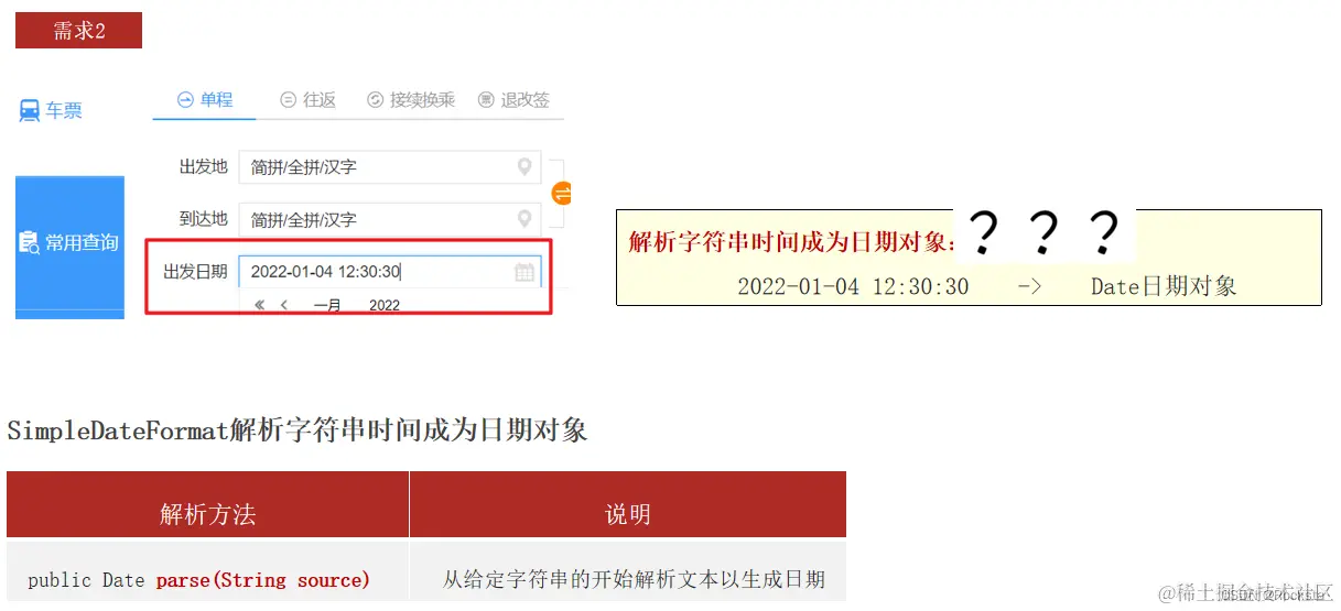 // 2.把字符串时间解析成日期对象(本节的重点):形式必须与被解析时间的格式完全一样,否则运行时解析报错!