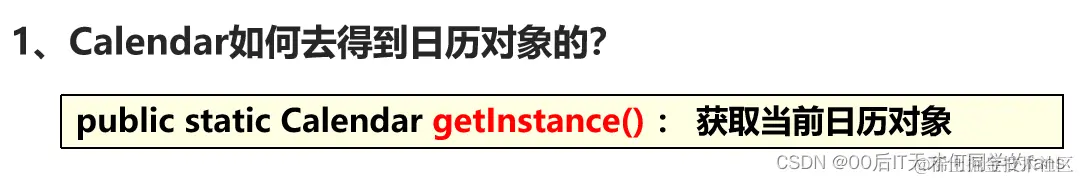 * 1.public static Calendar getInstance(): 返回一个日历类的对象。