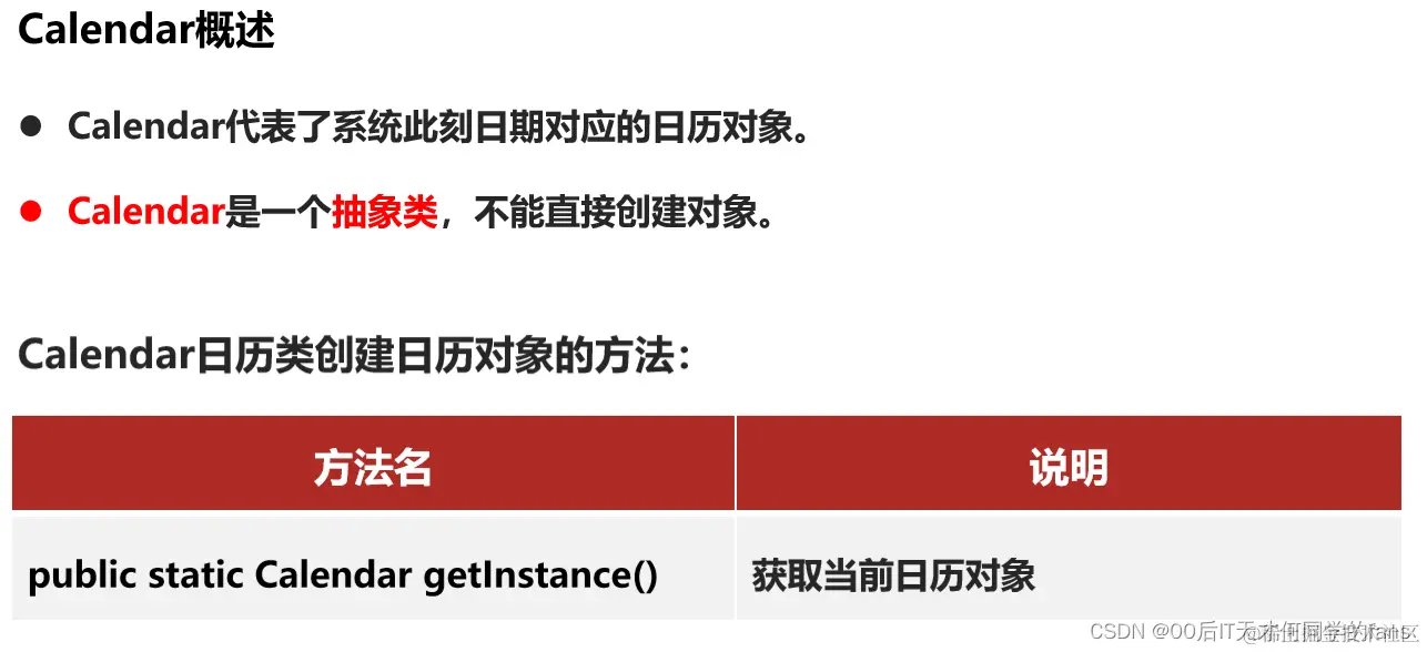 * Calendar是一个抽象类,不能直接创建对象。
