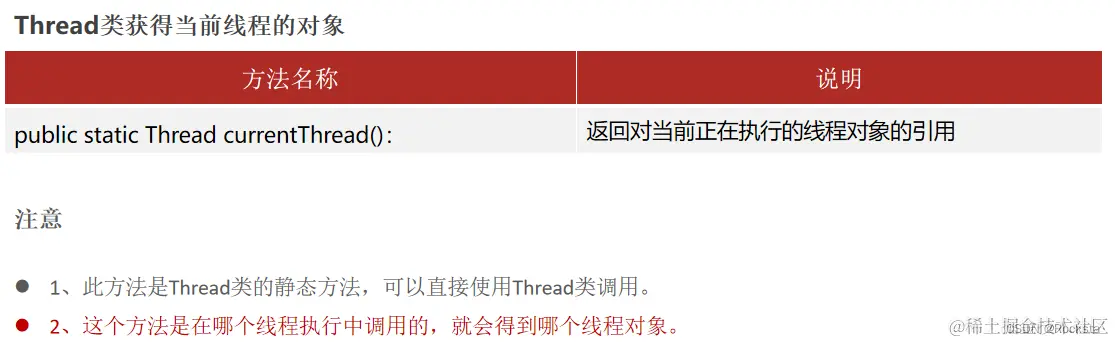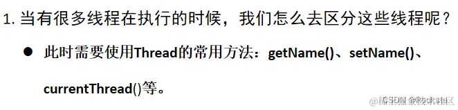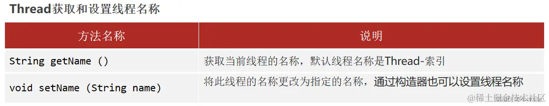 - Thread常用方法: 获取线程名称getName()、设置线程名称setName()、获取当前线程对象currentThread()。