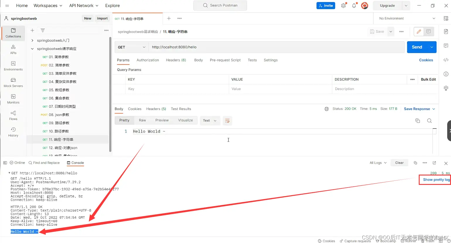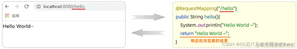 - 这个Hello World~字符串是在响应体当中返回回去的。