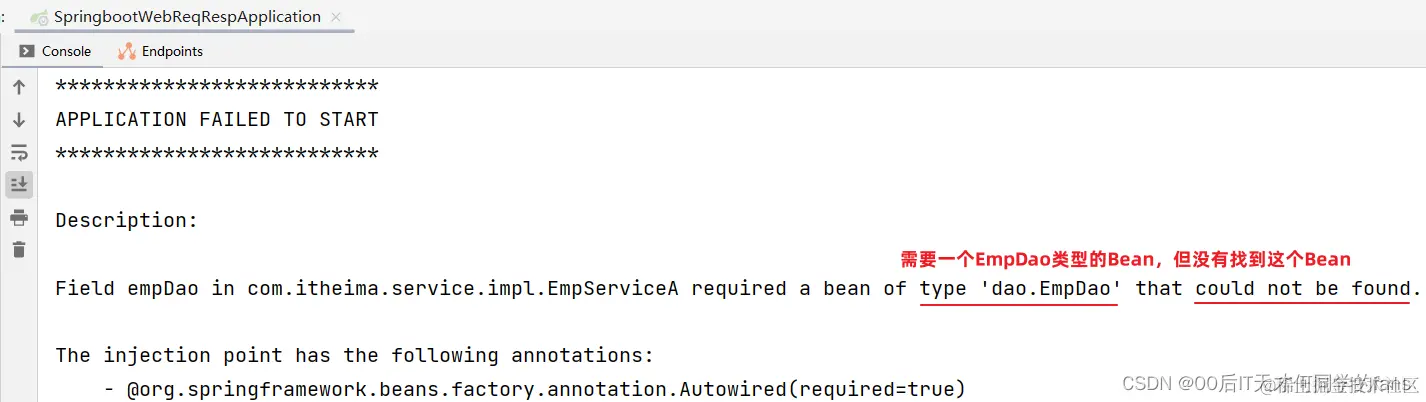 @Autowired注解,默认是按照类型进行自动装配的(去IOC容器中找某个类型的对象,然后完成注入操作),也就是说要去IOC容器当中去找这个类型的Bean对象,然后完成注入。