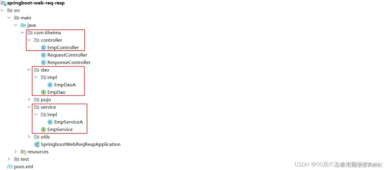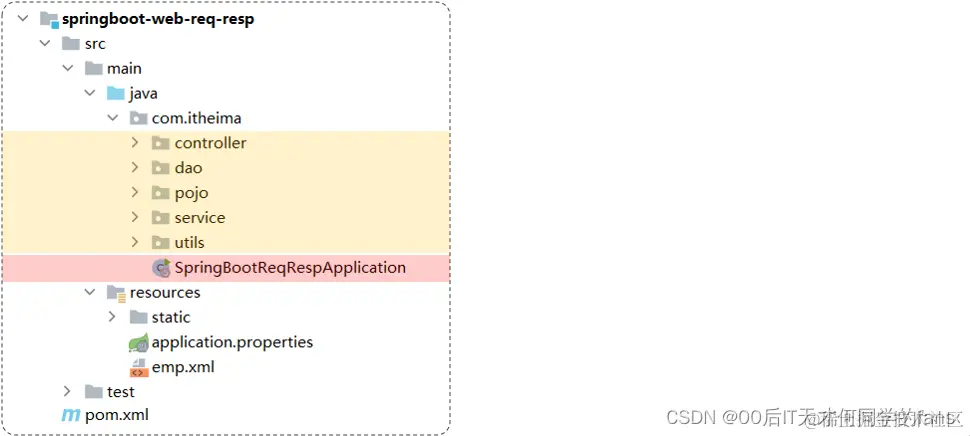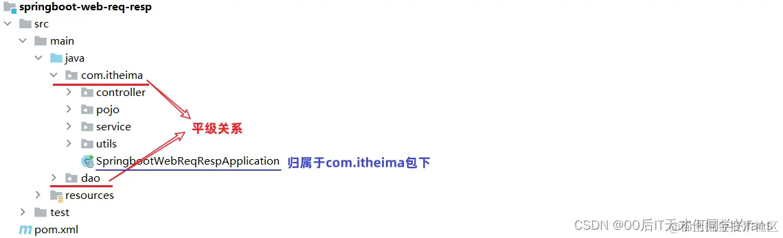 - 将我们定义的controller,service,dao这些包,都放在启动类 / 引导类所在包com.xxx的子包下,这样SpringBoot项目在启动的时候我们定义的bean对象就会被自动的扫描到。