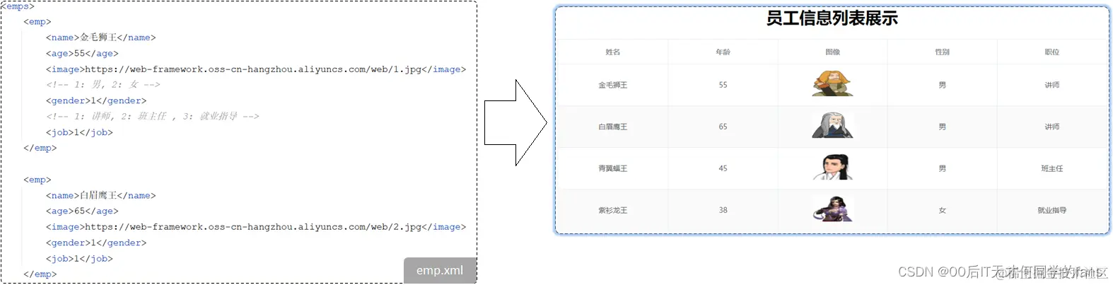 2.3 案例:获取员工数据,返回统一响应结果,在页面渲染展示