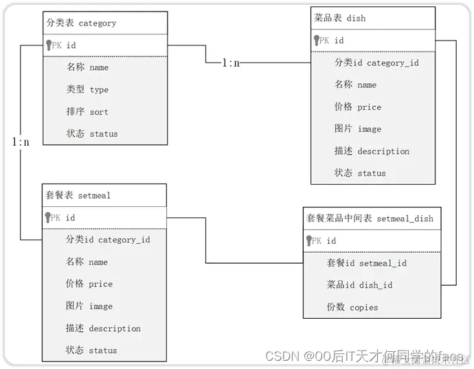 - 套餐表:setmeal