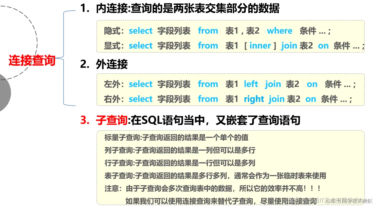 -- SQL:涉及到两张表,我们就要使用连接查询,如果没有特殊的说明,直接使用内连接即可