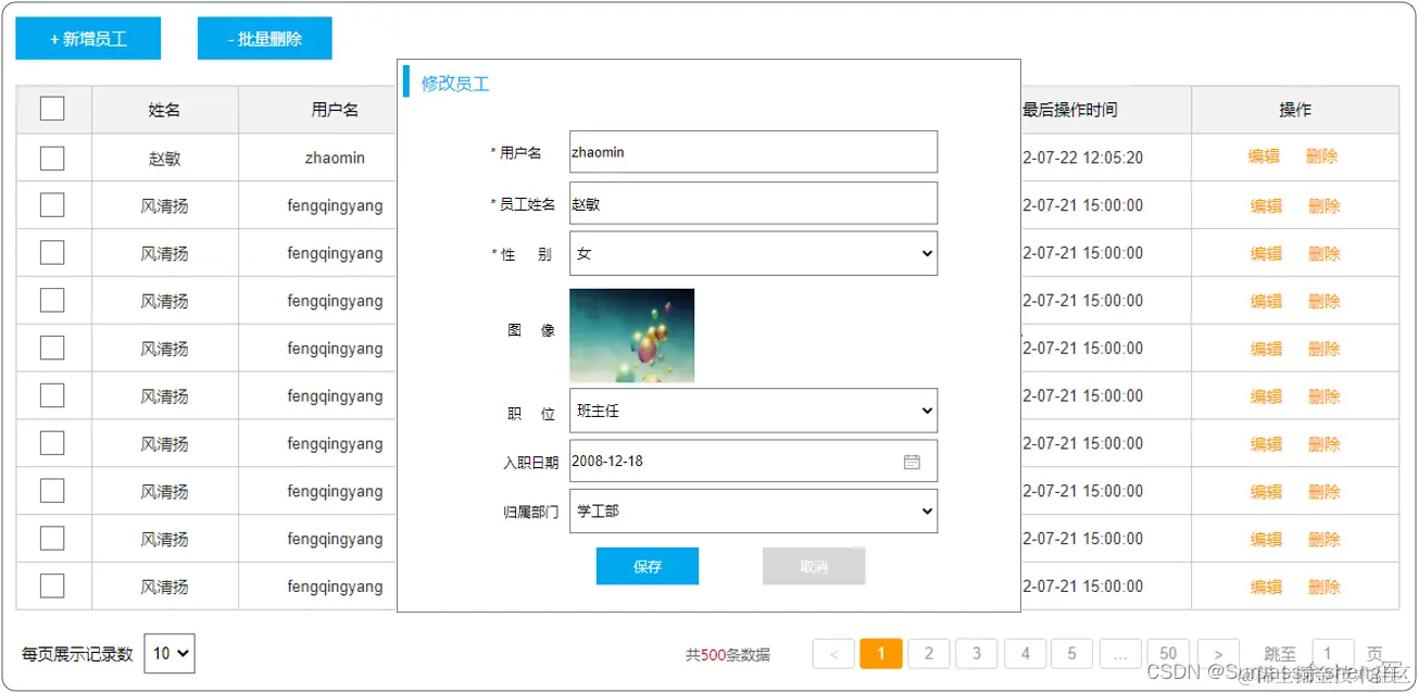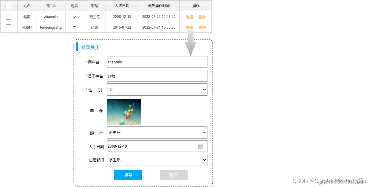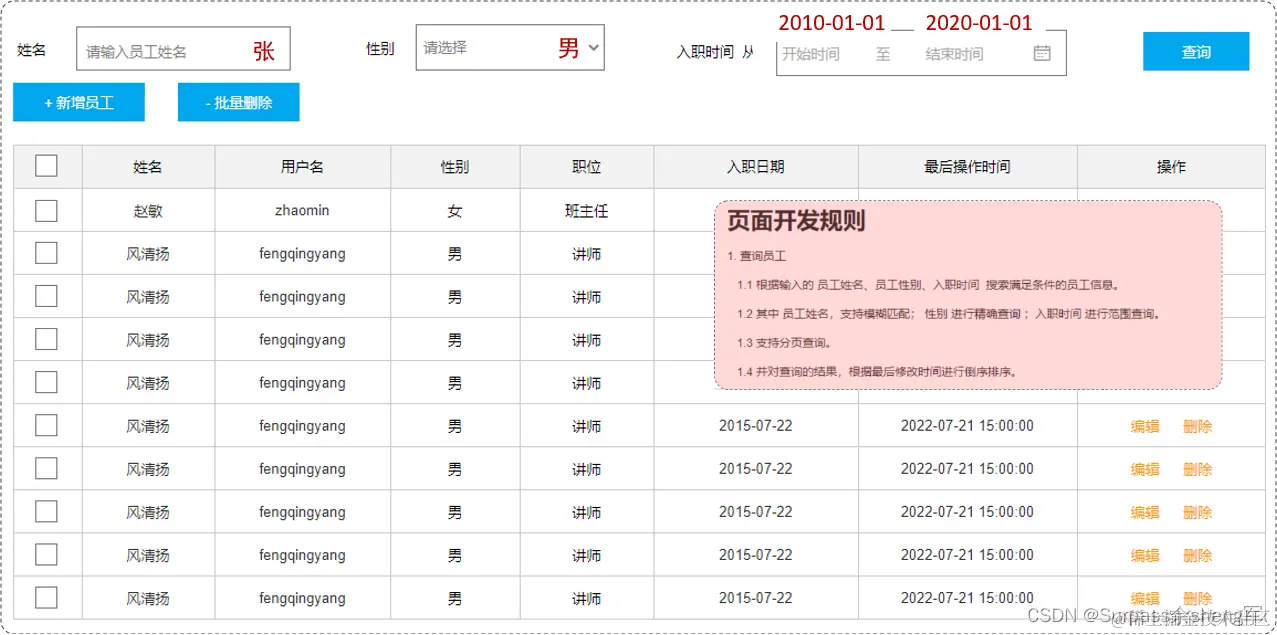在员工管理的列表页面中,我们需要根据条件查询员工信息,查询条件包括:姓名、性别、入职时间。