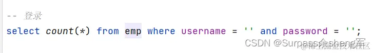 @Select("select id,username,password,name,gender,image,job,entrydate,dept_id,create_time,update_time from emp " +