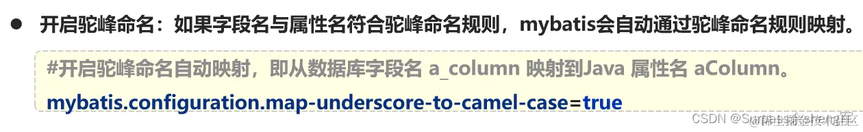 3. 开启MyBatis的驼峰命名自动映射开关(推荐) :