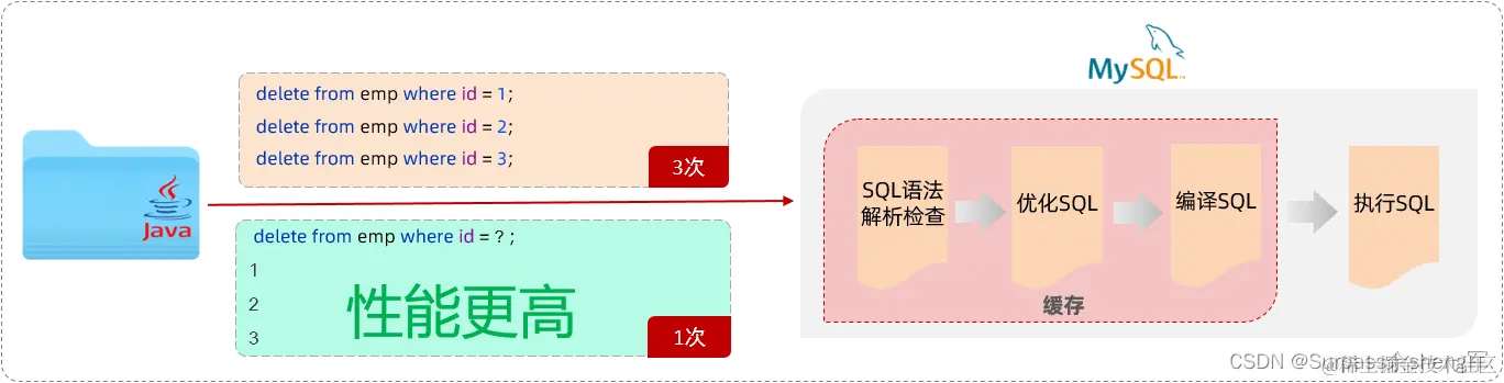 生成的SQL都是预编译的SQL语句(性能高、防止SQL注入,安全)