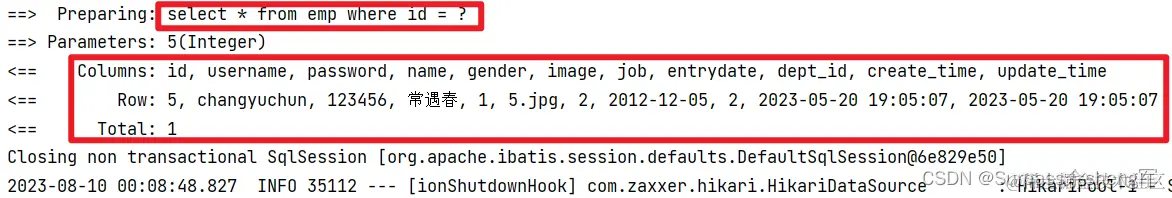 @Select("select id, username, password, name, gender, image, job, entrydate, dept_id, create_time, update_time from emp where id = #{id}")