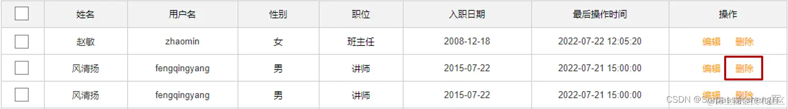 - 当我们点击后面的"删除"按钮时,前端页面会给服务端发送请求,并且会传递一个参数,也就是该行数据的唯一标识 - 主键ID。 我们接收到ID后,根据ID删除数据即可。