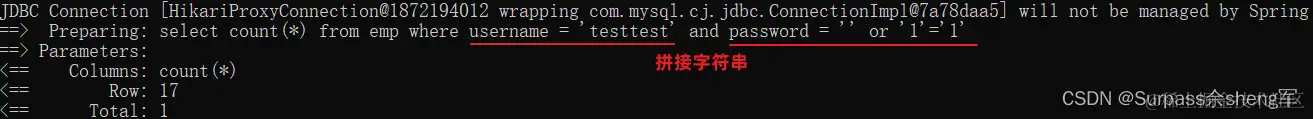 * 使用MySQL提供的字符串拼接函数concat()来解决SQL注入问题