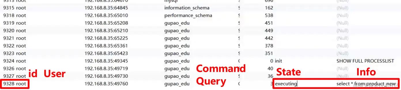 SHOW PROCESSLIST; -- 查看当前线程