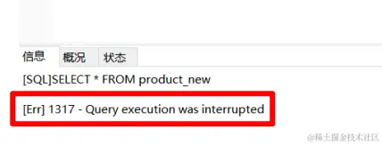 查看会话一的结果:[Err] - Query execution was interrupted 请求被中断