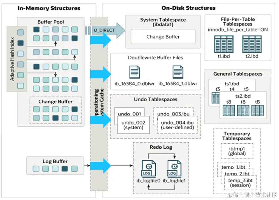 - 请说一下InnoDB存储引擎的内存以及磁盘结构