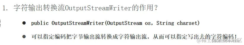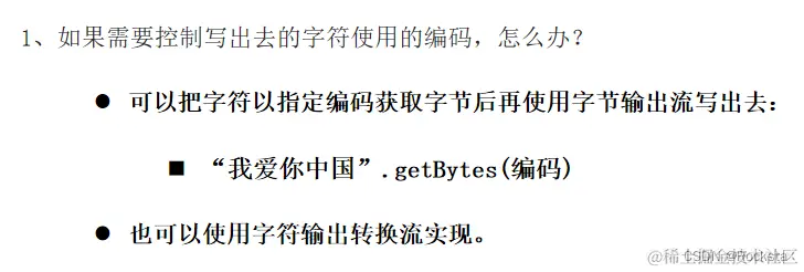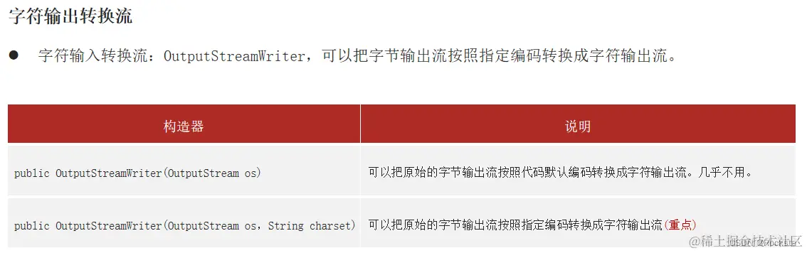 - 字符输出转换流:OutputStreamWriter,可以把原始的字节输出流按照指定编码转换成字符输出流