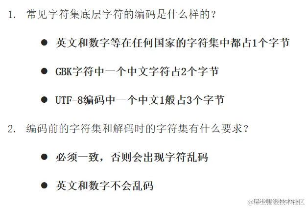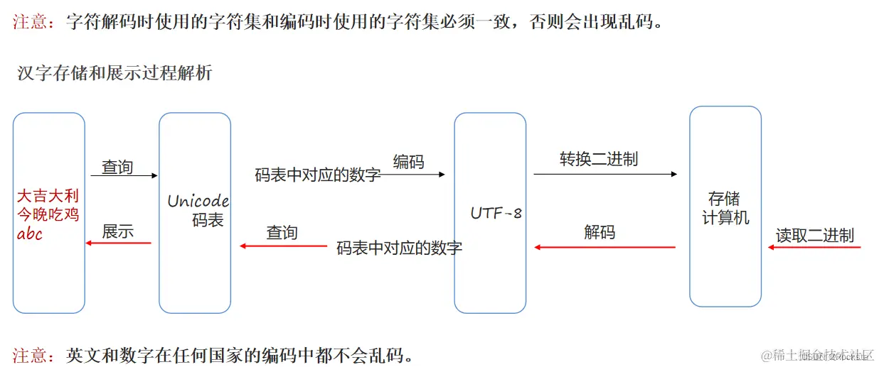 - 解码:把字节转换成对应的中文形式(编码前和编码后的字符集必须一致,否则乱码)
