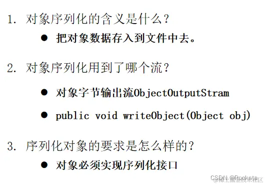 - 对象序列化:作用:以内存为基准,把内存中的对象存储到磁盘文件中去,称为对象序列化。
