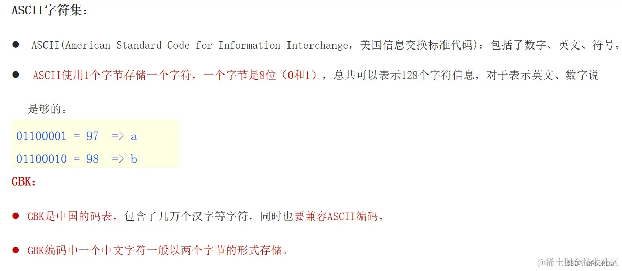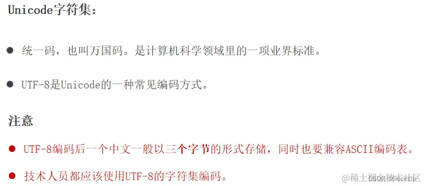 - 字符集:ASCII字符集、GBK编码、Unicode字符集(统一码、万国码)