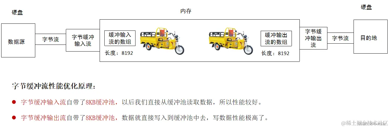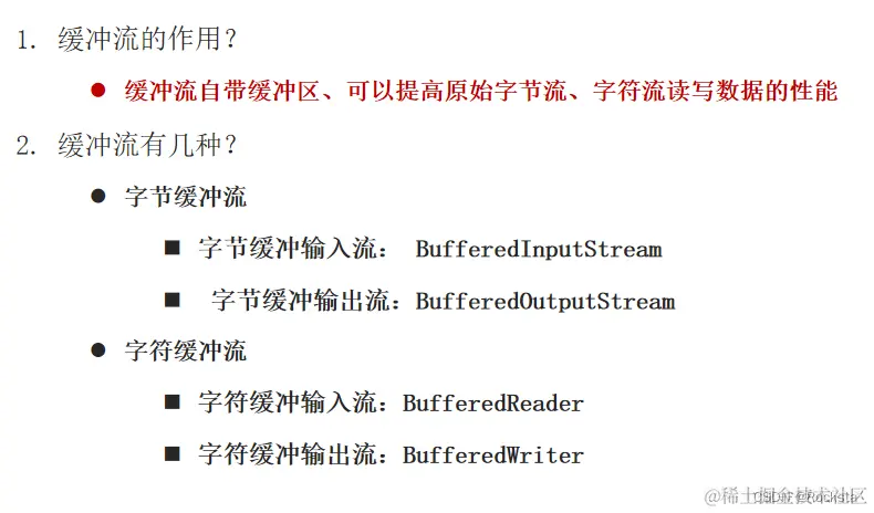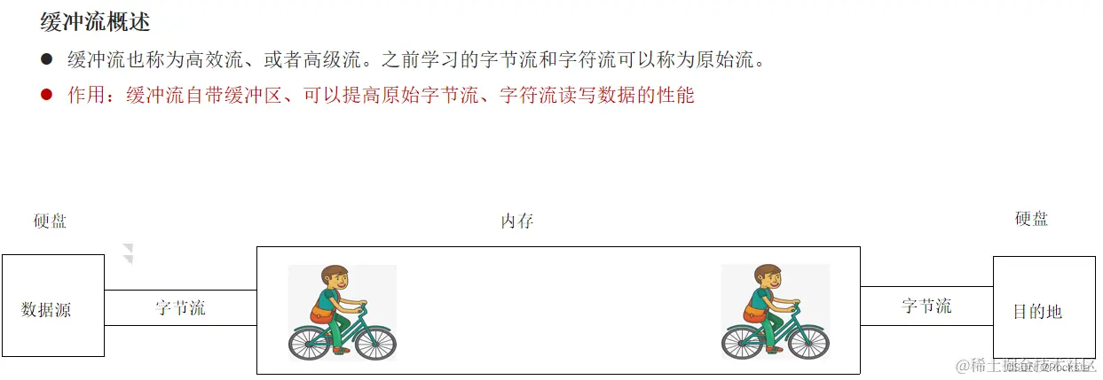 - 之前学的流都是基础流 / 原始流,性能不是很好,缓冲流读写数据的性能更好!