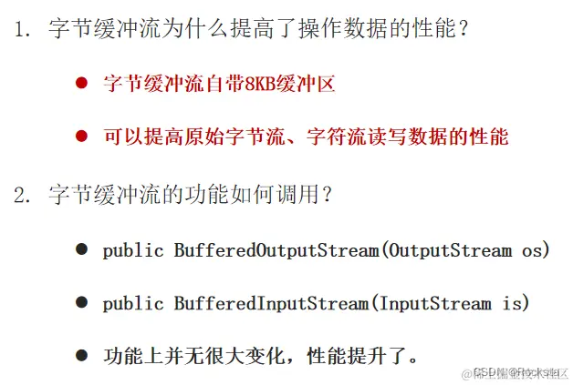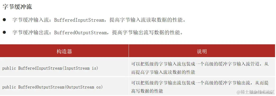 - 字节缓冲输入流:BufferedInputStream 字节缓冲输出流:BufferedOutputStream