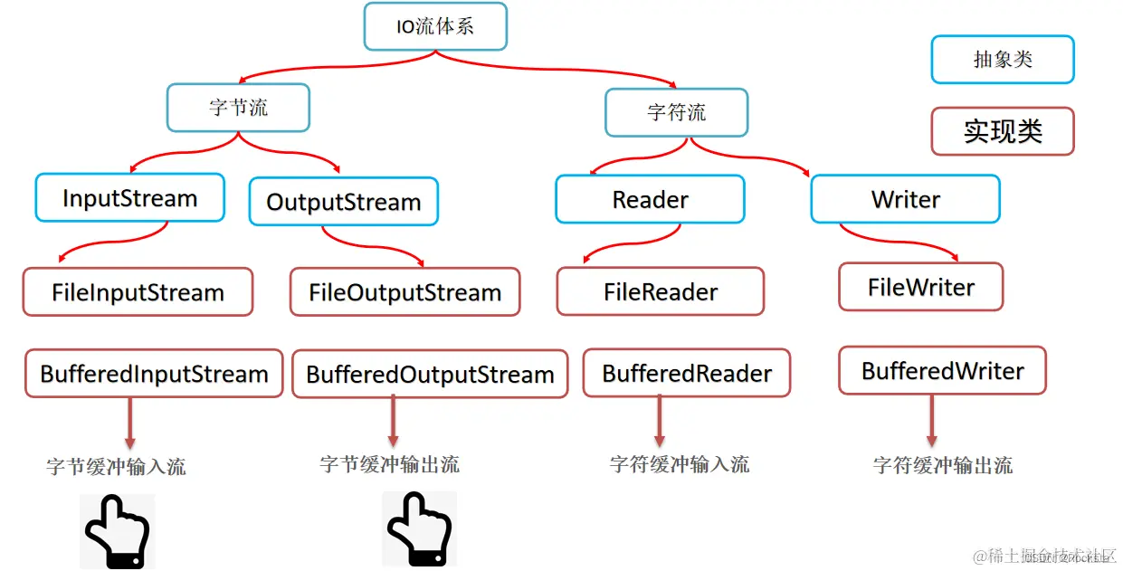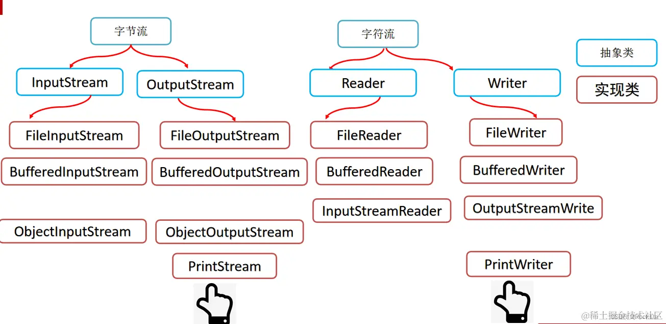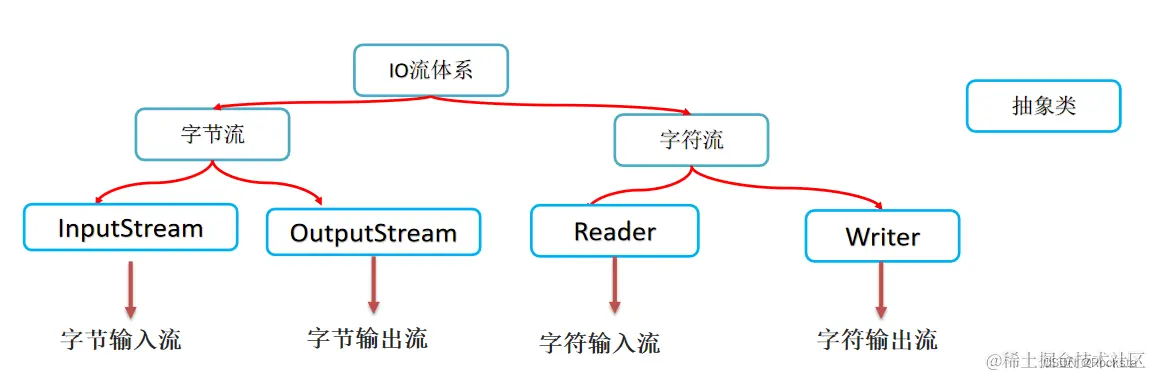 - 抽象类: 字节输入流:InputStream 字节输出流:OutputStream