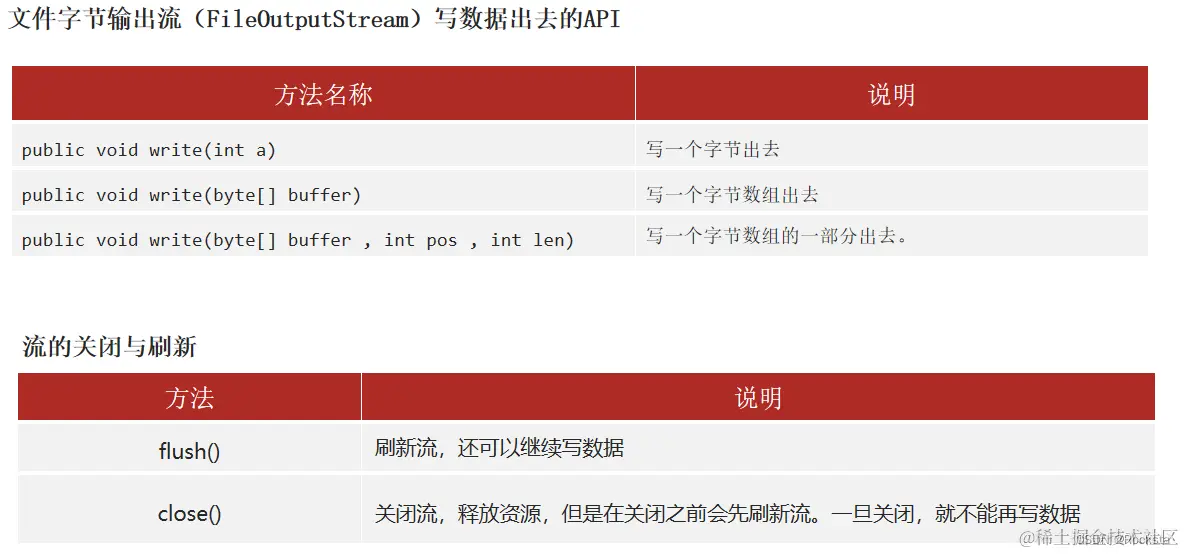 - 输出流写数据的时候就是一个字节一个字节去写的。