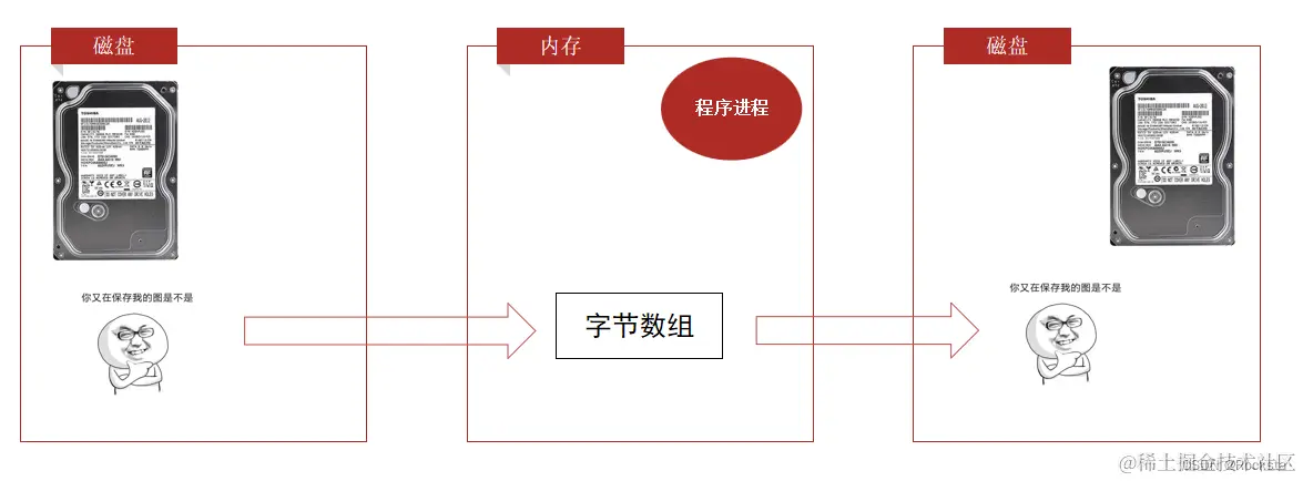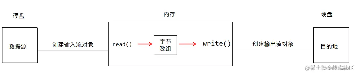 - 输入流:读数据到内存 输出流:写数据到磁盘