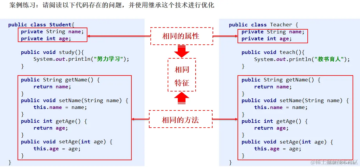 把相同的属性和行为抽离出来,可以降低重复代码的书写!