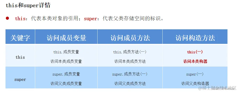 - 子类通过this(....)去调用本类的其他构造器,本类的其他构造器会通过super去手动调用父类的构造器,最终还是会调用父类构造器的(因为子类构造器会默认调用父类的无参构造器)。