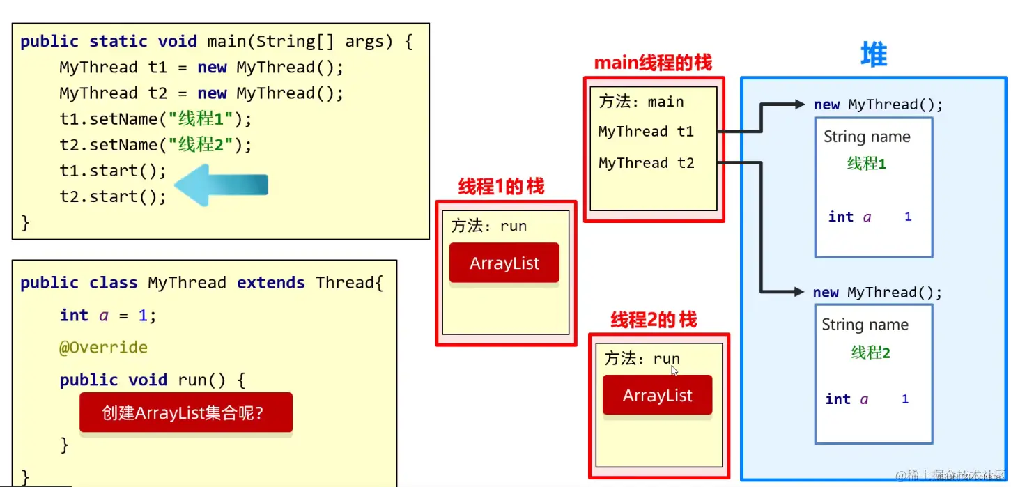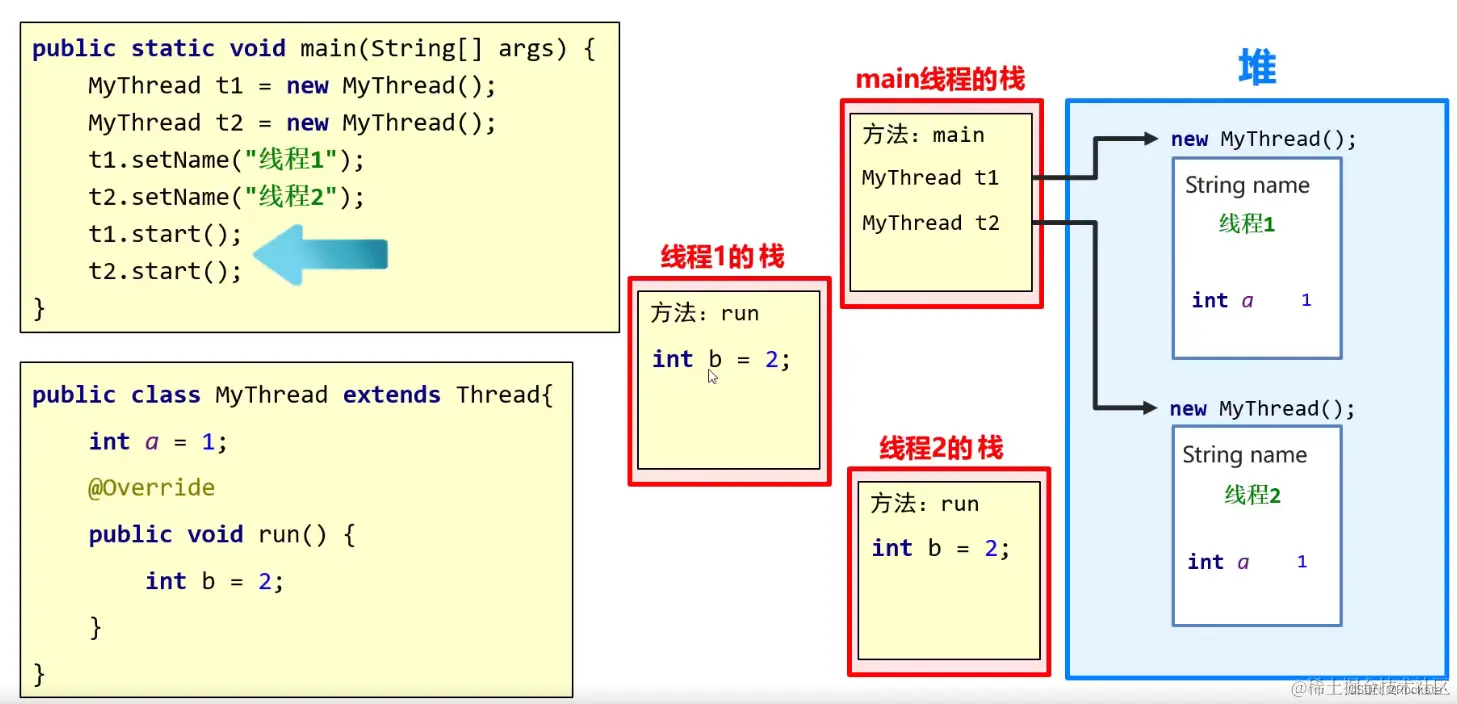 - 在Java内存图当中,堆内存它是唯一的,而栈内存它不是唯一的,它是跟线程是有关系的,简单理解就是每一个线程都有自己的栈,所以说,我们一般把它称为线程栈。