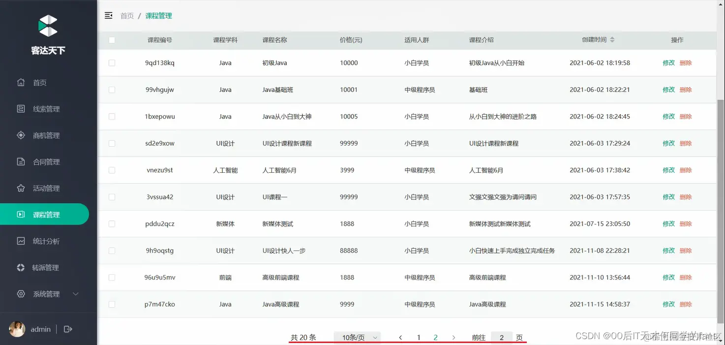 - 比如,当我们点击课程管理这个菜单之后,就会将数据库表结构当中的数据查询出来,然后通过前端代码将数据渲染展示在这个页面上。