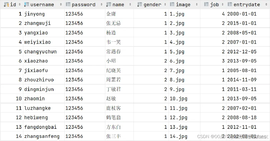 (14, 'zhangsanfeng', '123456', '张三丰', 1, '14.jpg', 2, '2002-08-01', '2022-10-27 16:35:33', '2022-10-27 16:36:01'),