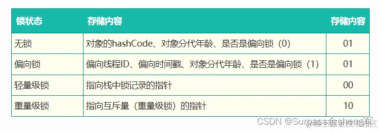 - 升级为重量级锁时,锁标志的状态值变为“10”,此时Mark Word中存储的是指向重量级锁的指针,此时等待锁的线程都会进入阻塞状态。