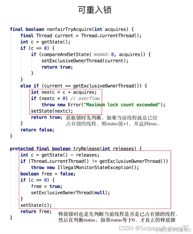 - 在最开始提及AQS的时候我们也提到了state字段(int类型,32位),该字段用来描述有多少线程持有锁。