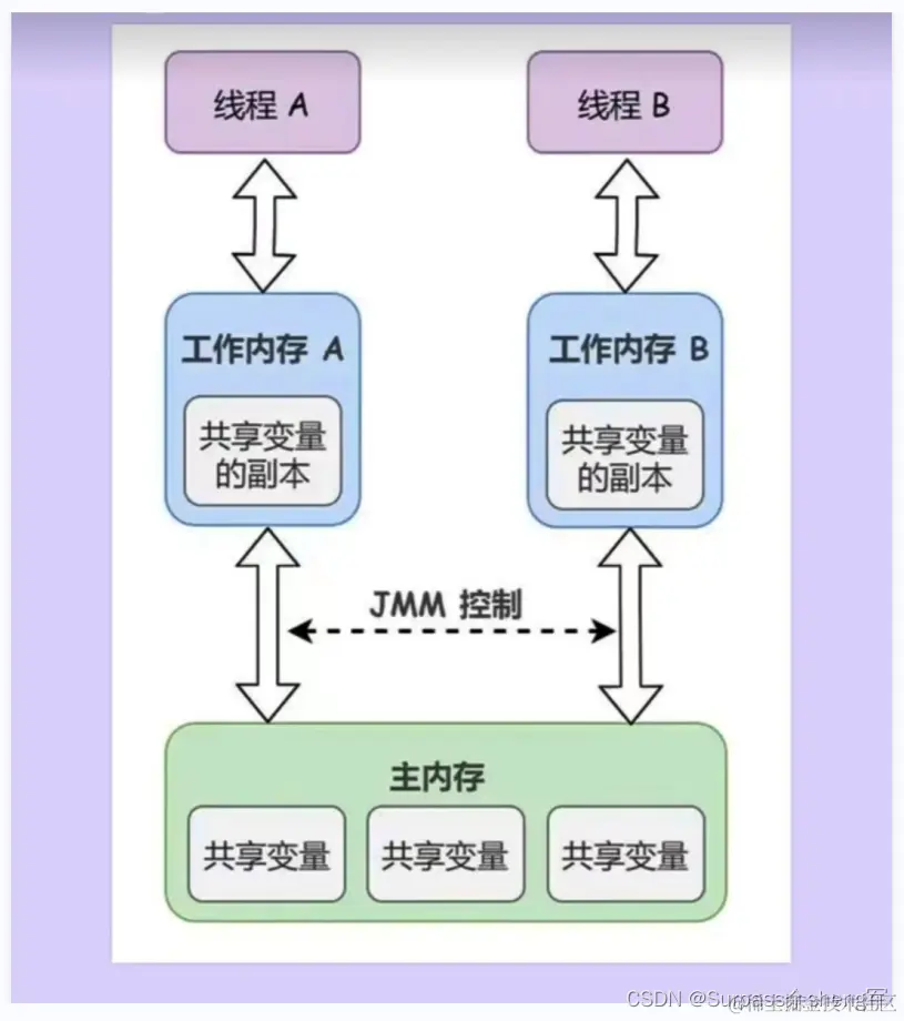- 然后,线程B到主内存中去读取线程A之前已更新过的共享变量。