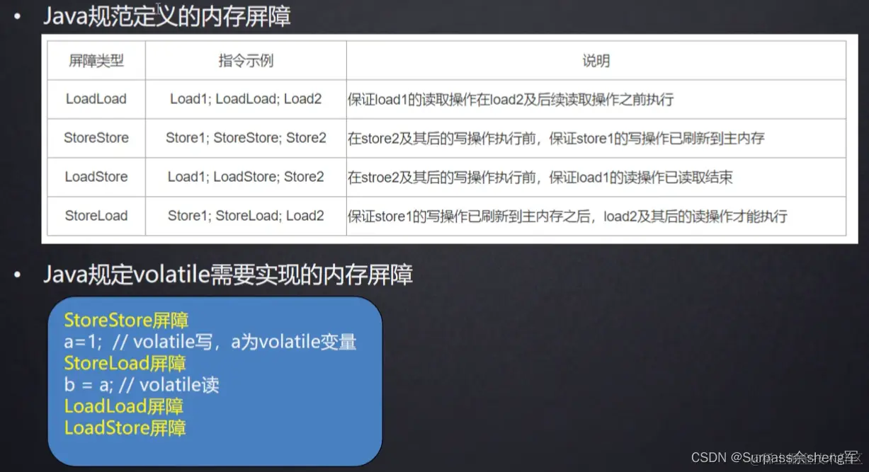 - 内存屏障可以避免指令重排、保证内存操作的可见性。