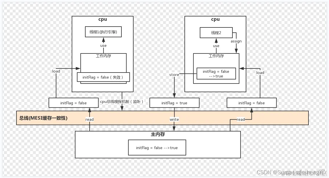 - 线程对共享变量读取的时候,要从主内存中读,而不是缓存。