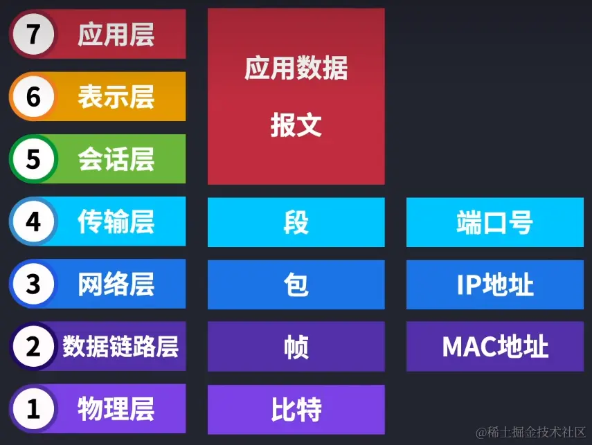 - 应用层、表示层和会话层的数据统称为应用数据,或者应用负载,也可以叫做上层数据,同时也是教科书上说的报文。