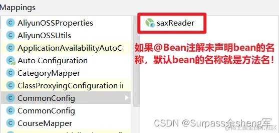 注意:声明一个bean对象如果没有指定名称,默认类名首字母小写
