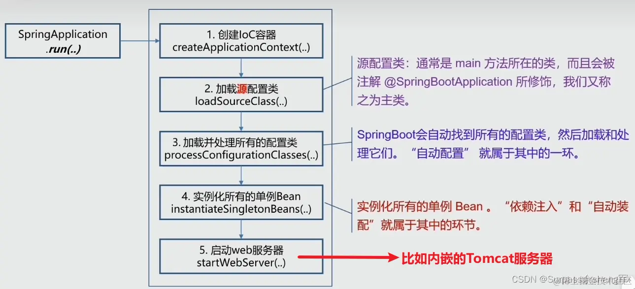 - 默认情况下,SpringBoot / Spring项目在启动的时候会自动的创建IOC容器(也称为Spring容器) ,并且在启动的过程当中会自动的将bean对象都创建好并且存放在IOC容器当中。