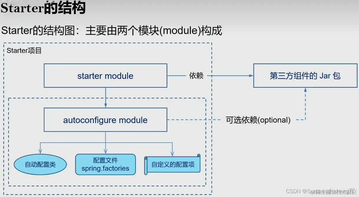 总结:starter模块当中就是进行依赖管理的,autoconfigure模块就是来实现自动配置的!