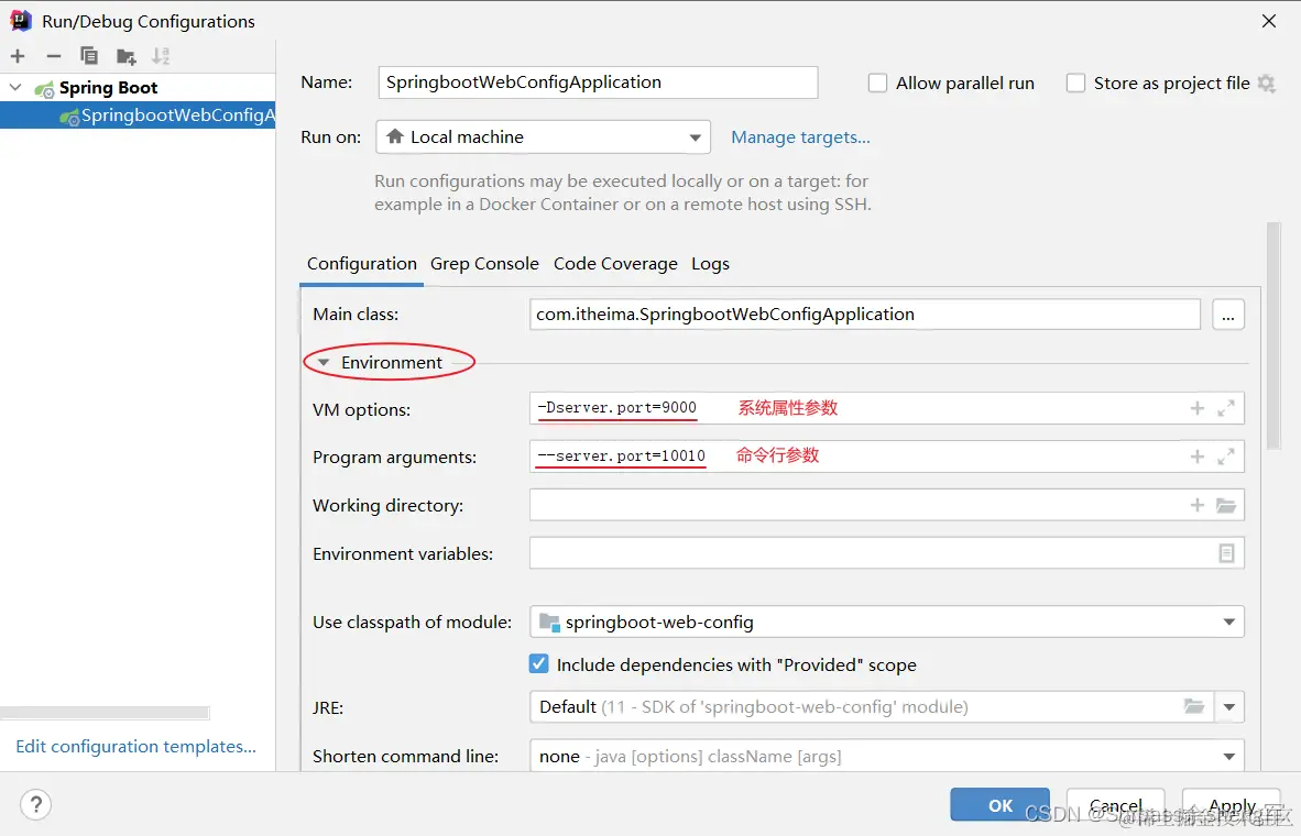 **2. 命令行参数 - Program arguments(格式:--**key=value )