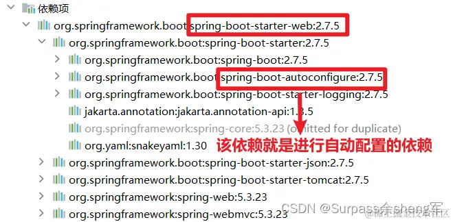 - 通过依赖传递,会把autoconfigure依赖也引入了