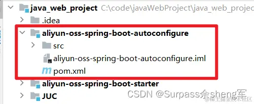 我们再将之前案例中所使用的阿里云OSS部分的代码直接拷贝到autoconfigure模块下,然后进行改造就行了。
