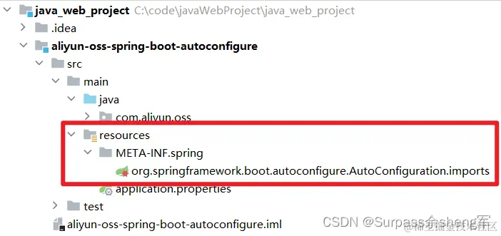 在aliyun-oss-spring-boot-autoconfigure模块中的resources下,新建自动配置文件: